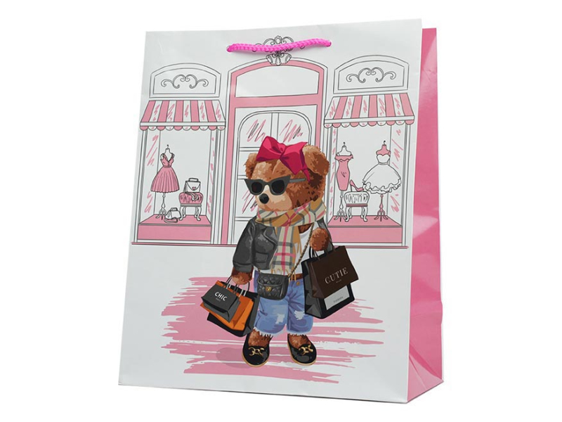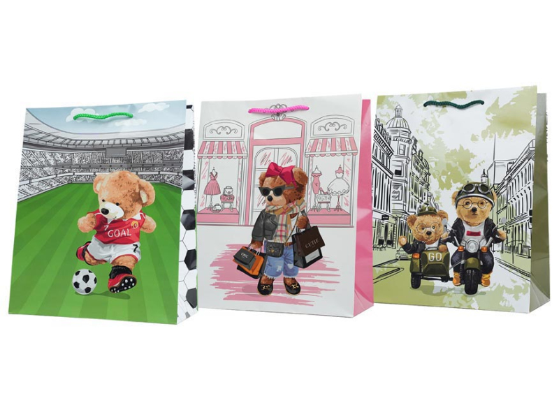 Darčeková papierová taška T4 s potlačou. Taška je vybavená pevným uchom na jednoduché prenášanie a kartičkou, na ktorú môžete napísať svoje meno alebo krátke venovanie. Ak nemáte čas zabaliť darček do darčekového papiera, máme široký výber darčekových tašiek práve pre vás. Motív: medvedíky Rozmer: 180 x 230 x 100 mm Dodávame v mixe 3 ks podľa skladových zásob. Uvedená cena je za 1 ks.