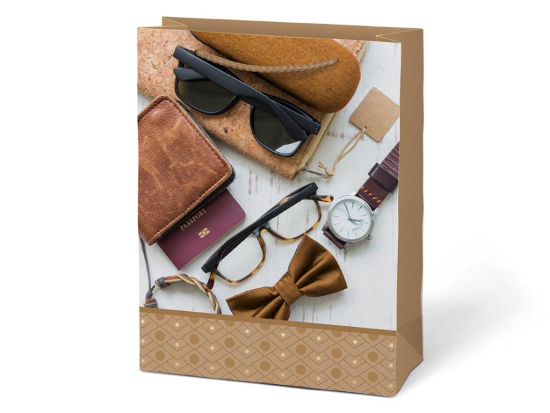 Papierová darčeková taška T4 v rôznych pánskych motívoch a farbách. Taška je vybavená držadlami na ľahké prenášanie a je vhodná na rôzne príležitosti, ako sú narodeniny, sviatky, svadby alebo iné výnimočné udalosti. Pohodlné rukoväte sú vyrobené z pevného materiálu, ktorý zabezpečuje ľahké prenášanie. Dajte svojim blízkym najavo, že vám na nich záleží, a darujte im elegantnú a štýlovú tašku. Motív: mix motívov Rozmery: 190 x 250 x 100 mm Dodávame v mixe 4 motívov podľa skladových zásob. Uvedená cena je za 1 ks.