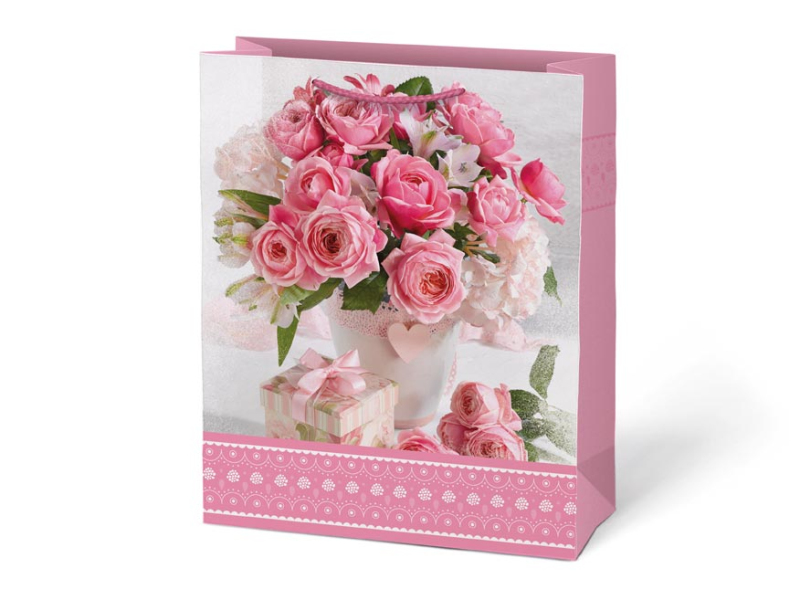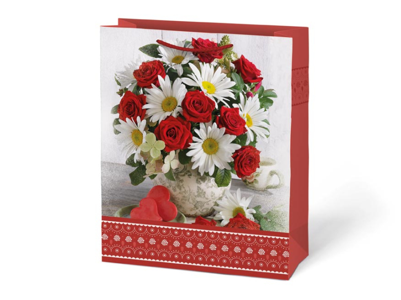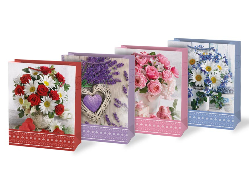 Papierová darčeková taška T5 zdobená kvetinovým motívom. Je ideálna na darovanie darčekov pri rôznych príležitostiach, ako sú narodeniny, výročia alebo iné oslavy. Táto taška je ideálnou voľbou na elegantné a rýchle zabalenie darčekov. Pohodlné rukoväte sú vyrobené z pevného materiálu, ktorý zabezpečuje jednoduché prenášanie. Dajte svojim blízkym najavo, že vám na nich záleží, a darujte im darček v elegantnej a štýlovej taške. Rozmery: 190 x 250 x 100 mm Motív: mix kvetinových motívov Dodávame v mixe 4 ks podľa skladových zásob. Uvedená cena je za 1 ks.