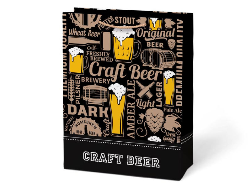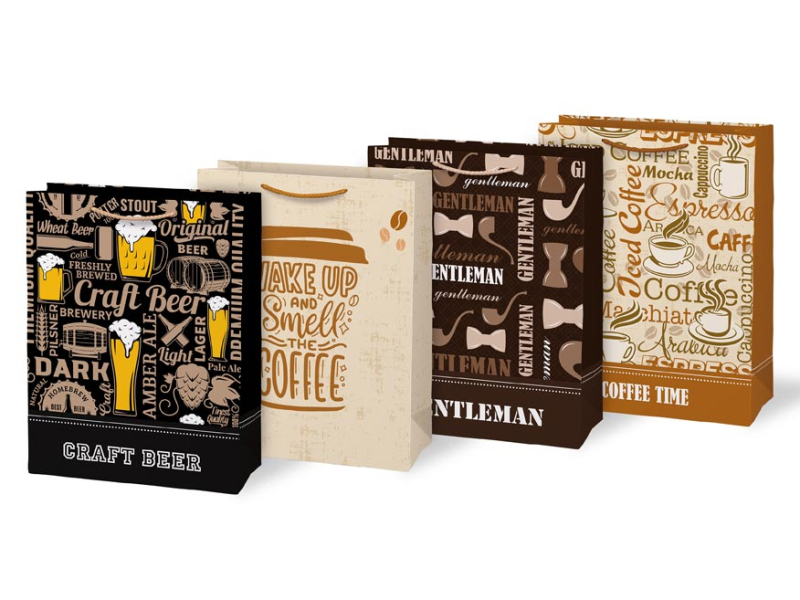 Papier, darčeková taška T5. Každý darček musí byť do niečoho zabalený. Ak nemáte čas zabaliť ho do baliaceho papiera, máme pre vás na výber rôzne darčekové tašky. Taška má pevnú rukoväť na jednoduché prenášanie a štítok na napísanie mena alebo kartičky. MOTÍV: - pivo - káva - fajky Rozmery: 260 x 340 x 140 mm Dodáva sa v mixe 4 ks podľa skladových zásob. Uvedená cena je za 1 ks.