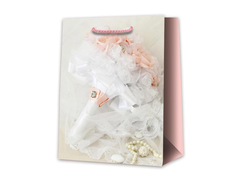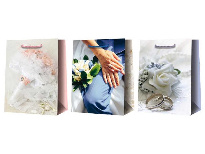 Darčeková papierová taška T5 so svadobným motívom. Ideálne pre reprezentatívne odovzdanie svadobného daru. Darčekové tašky sú skvelé na darčeky, ktoré sa ťažko balia do baliaceho papiera. Sú tiež veľmi praktické pre tých, ktorí neradi balia darčeky alebo nevedia, ako na to, a s výsledkom by neboli spokojní. Motív: svadobný Rozmer: 265 x 325 x 135 mm Dodávame v mixe 3 ks podľa skladových zásob. Uvedená cena je za 1 ks.