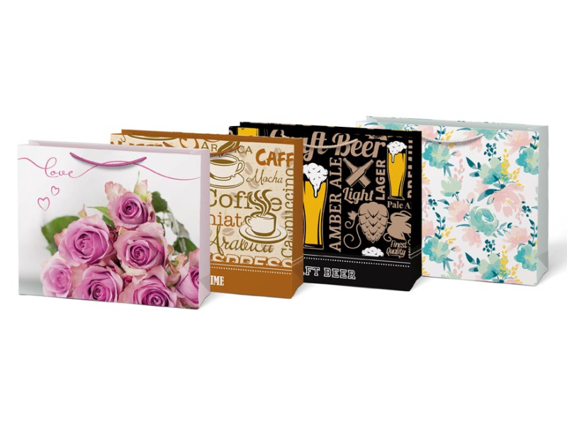Papierová, darčeková taška T8. Každý darček musí byť do niečoho zabalený. Ak nemáte čas zabaliť ho do baliaceho papiera, máme pre vás na výber rôzne darčekové tašky. Taška má pevnú rukoväť na jednoduché prenášanie a štítok na napísanie mena alebo kartičky. MOTÍV: - kytica ruží - káva - pivo - kvety Rozmery: 325 x 265 x 135 mm Dodáva sa v mixe 4 ks podľa skladových zásob. Uvedená cena je za 1 ks.
