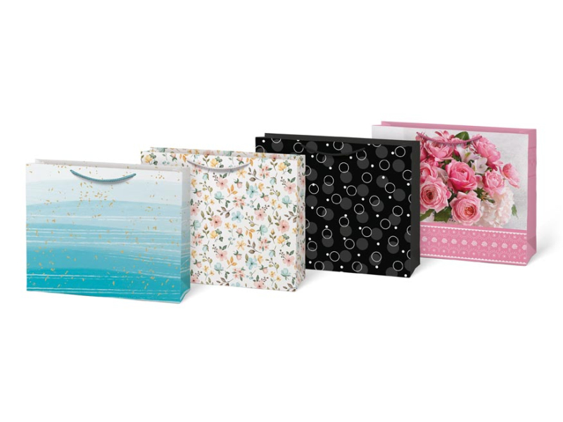 Papierová darčeková taška T8 so sviežim a farebným dizajnom. Každá taška je navrhnutá tak, aby vyzerala atraktívne a dodala vašim darčekom luxusný vzhľad. Vhodné na rôzne príležitosti vrátane narodenín, výročí, osláv a iných výnimočných udalostí. Motív: mix motívov Veľkosť: 325 x 265 x 135 mm Dodávame v mixe 4 ks podľa skladových zásob. Uvedená cena je za 1 ks.