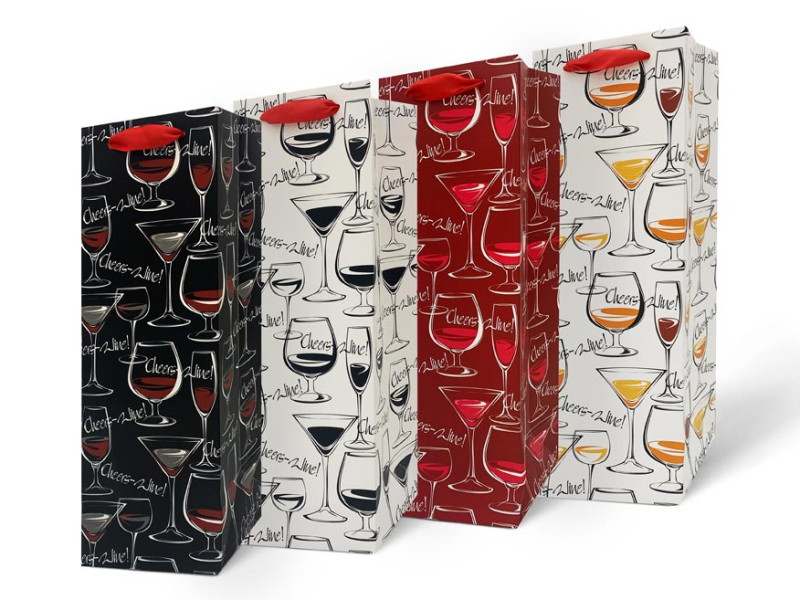 Papierová, darčeková taška na víno alebo na inú fľašu. Taška je opatrená pevným uchom pre ľahšie nosenie. Ak nemáte čas baliť darček do darčekového baliaceho papiera, tak práve pre vás máme široký výber darčekových tašiek. Gramáž papiera: 157 g Rozmer: 120 x 360 x 100 mm Dodávame v mixe 4 kusov podľa skladových zásob. Uvedená cena je za 1 ks.