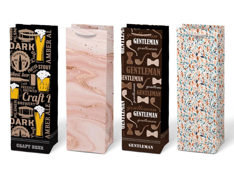 Papierová darčeková taška na víno alebo na inú fľašu. Taška je opatrená pevným uchom pre ľahšie nosenie. Ak nemáte čas baliť darček do darčekového baliaceho papiera, tak práve pre vás máme široký výber darčekových tašiek. MOTÍV: - pivo - abstraktné - fajky - lístočky Gramáž papiera: 157 g Rozmer: 120 x 360 x 100 mm Dodávame v mixe po 4 ks podľa skladovej zásoby. Uvedená cena je za 1 ks.