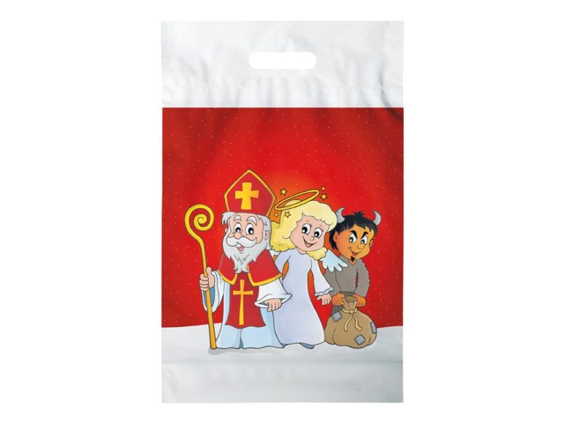 Taška s motívom Mikuláša vyrobená z PVC s prehmatom, ktorá je ideálna na zabalenie dobrôt, sladkostí a na ďalšiu mikulášsku nádielku pre deti. Materiál: PVC Rozmer: 290 x 460 x 80 mm Uvedená cena je za 1 ks.