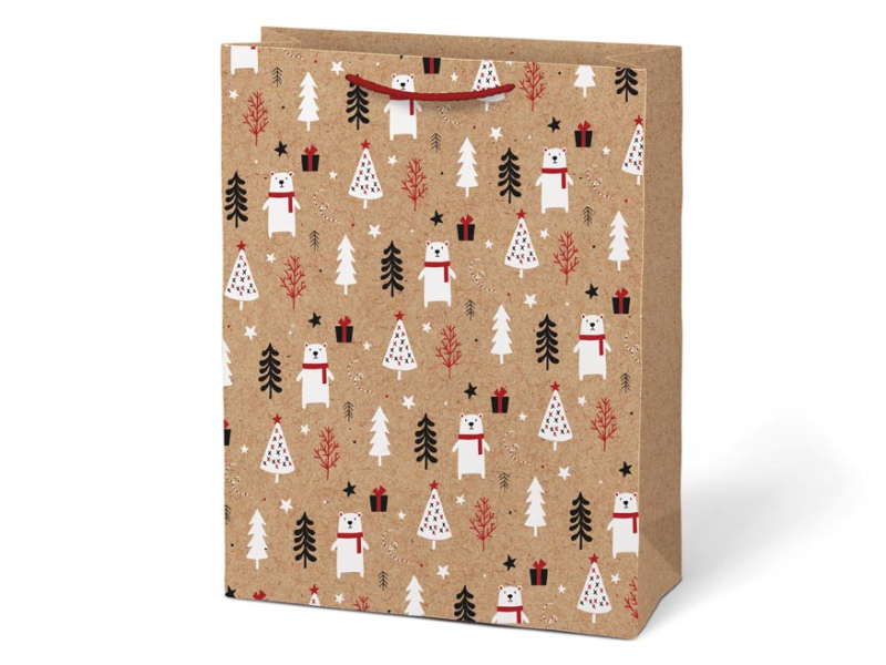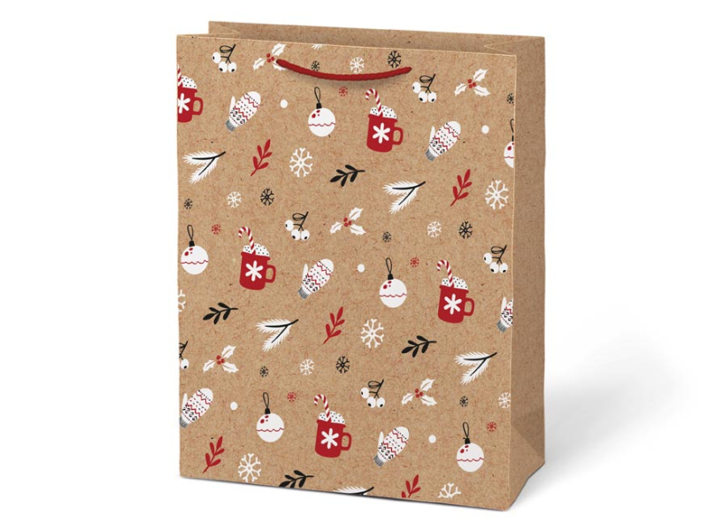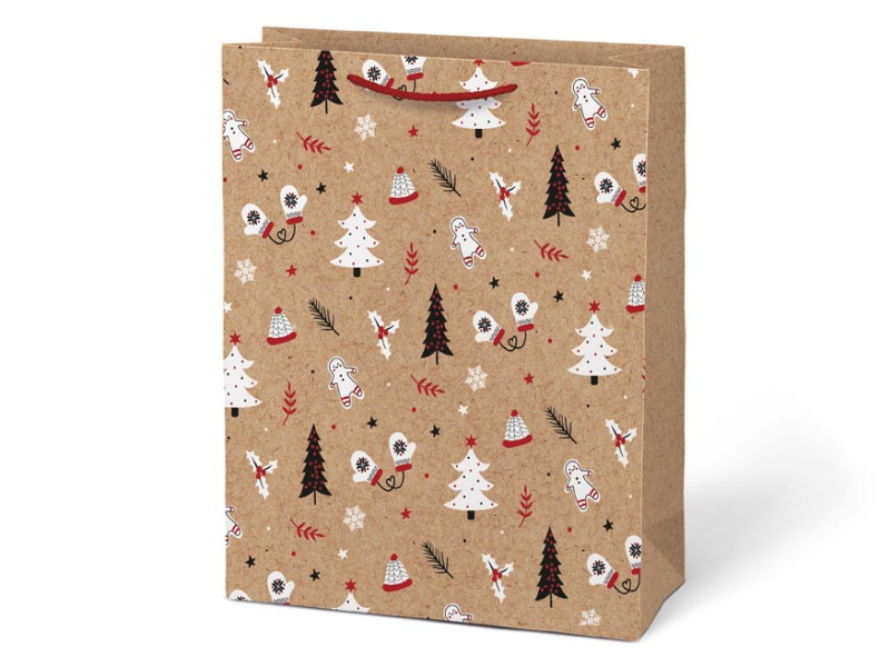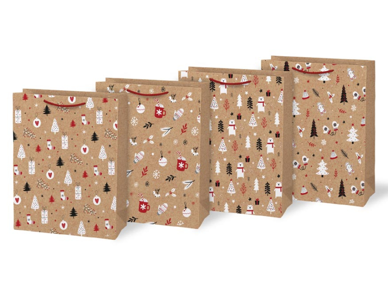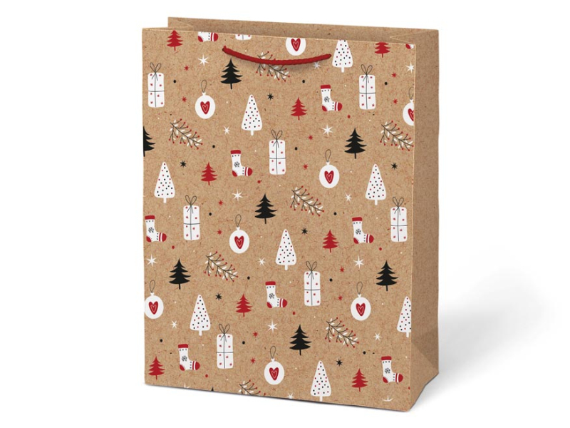 Vianočná darčeková taška L LUX KRAFT z pevného kraftového papiera s potlačou. Je ideálny na odovzdanie darčekov, a veľkým pomocníkom keď je ťažké darček zabaliť do darčekového baliaceho papiera. Taška má pletené textilné uši. Farba: hnedá/prírodná Materiál: kraftový papier Motív: mix vianočných motívov Rozmer: 260 x 320 x 138 mm Dodávame v mixe po 4 ks podľa skladovej zásoby. Uvedená cena je za 1 ks.