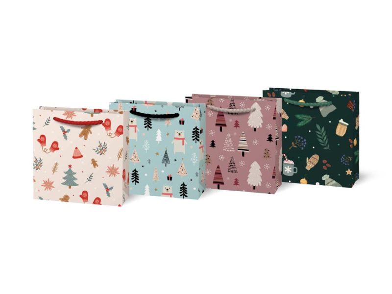 Vianočná, darčeková, papierová taška, je ideálna na odovzdanie darčekov a veľkým pomocníkom, keď je ťažké darček zabaliť do darčekového baliaceho papiera. Taška je opatrená pevným uchom Motív: mix vianočných motívov Rozmer: 90 x 90 x 40 mm Dodávame v mixe 4 ks podľa skladových zásob. Uvedená cena je za 1 ks.