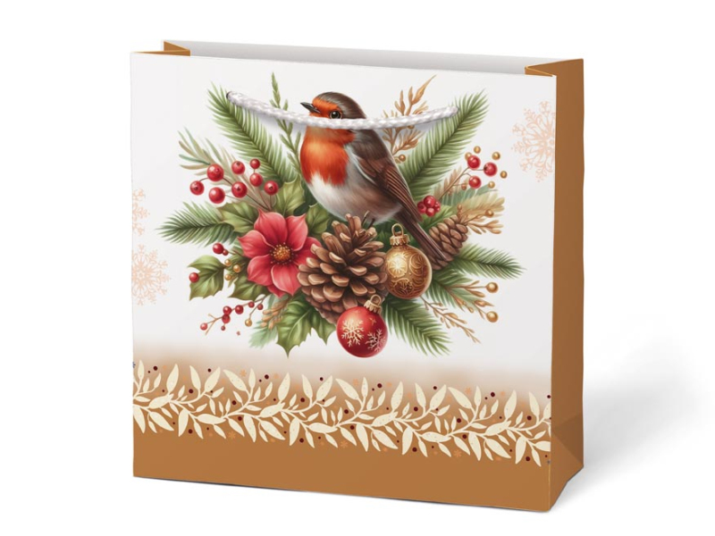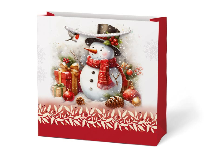 Vianočná darčeková papierová taška T2 s vianočnými motívmi je dokonalým spojením elegancie a praktickosti. Taška je vhodná na balenie všetkých druhov darčekov, od malých prekvapení po väčšie predmety, a pridáva im kúzlo sviatočnej atmosféry. Je skutočne nepostrádateľným pomocníkom, keď sa balenie darčeka do klasického baliaceho papiera zdá byť príliš ťažké. Jej robustné uši zaisťujú pohodlné a bezpečné prenášanie. Rozmer: 170 x 170 x 60 mm Motív: zasnežená chalupa, vianočná lampáš, vtáčik na vetve, snehuliak Dodávame v mixe po 4 ks podľa skladovej zásoby. Uvedená cena je za 1 ks.