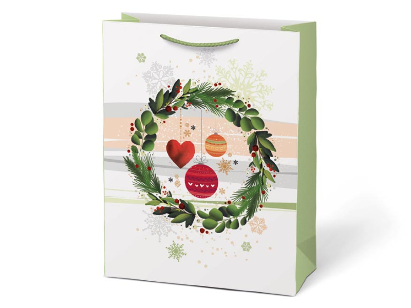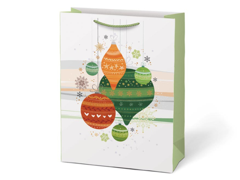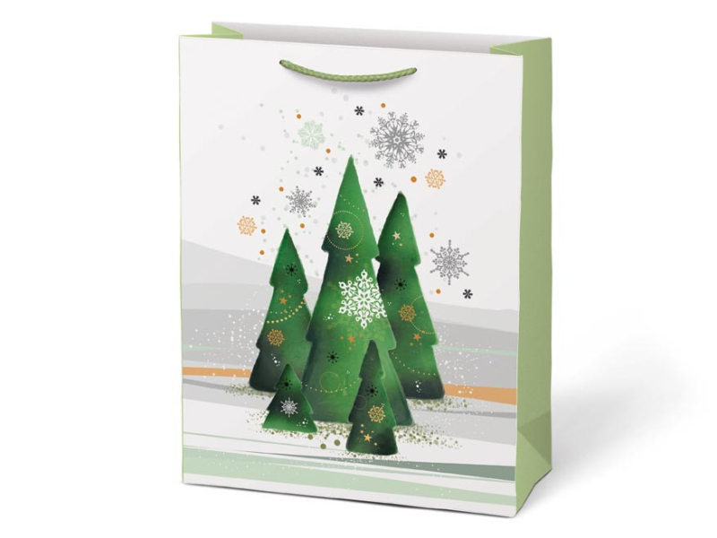Vianočná, darčeková, papierová taška T5. Je ideálna na darovanie darčekov a skvelým pomocníkom, keď je ťažké zabaliť darček do darčekového baliaceho papiera. Vrecko má pevnú rukoväť. Rozmery: 260 x 320 x 138 mm Motív: zmes vianočných motívov Dodávame v mixe 4 ks podľa skladových zásob. Uvedená cena je za 1 ks.