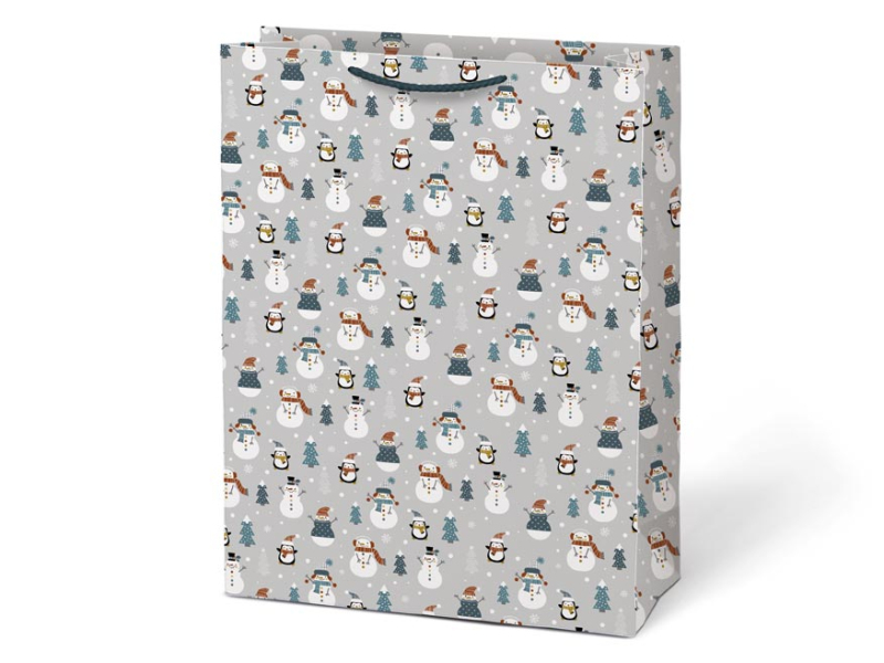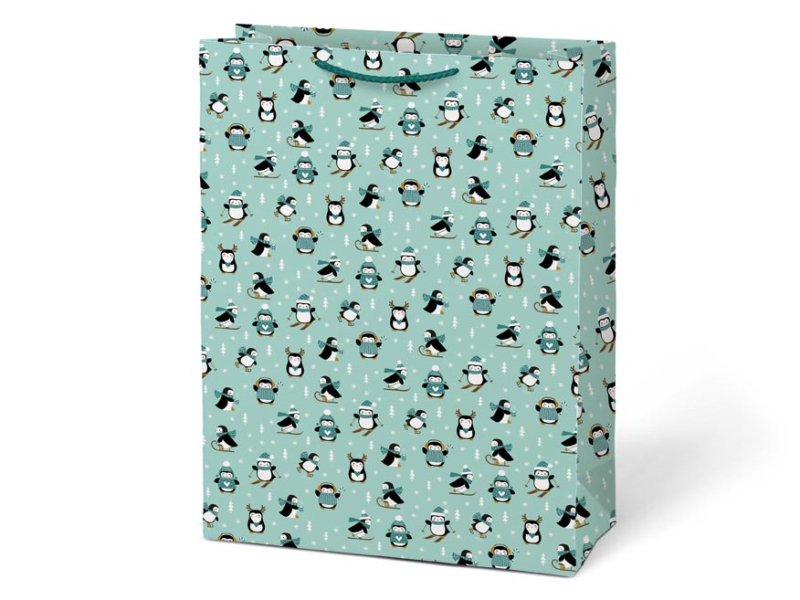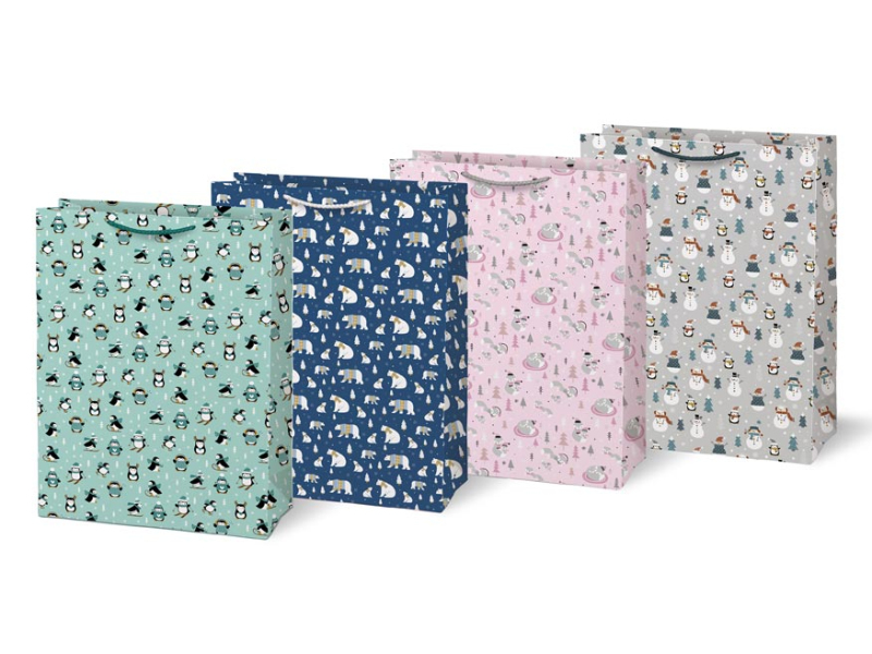 Vianočná, darčeková, papierová taška T10. Je ideálna na darovanie darčekov a skvelým pomocníkom, keď je ťažké zabaliť darček do darčekového baliaceho papiera. Vrecko má pevnú rukoväť. MOTÍV: - tučniaci - ľadoví medvedi - líšky - snehuliaci Rozmery: 405 x 555 x 205 mm Dodávame v mixe 4 ks podľa skladových zásob. Uvedená cena je za 1 ks.
