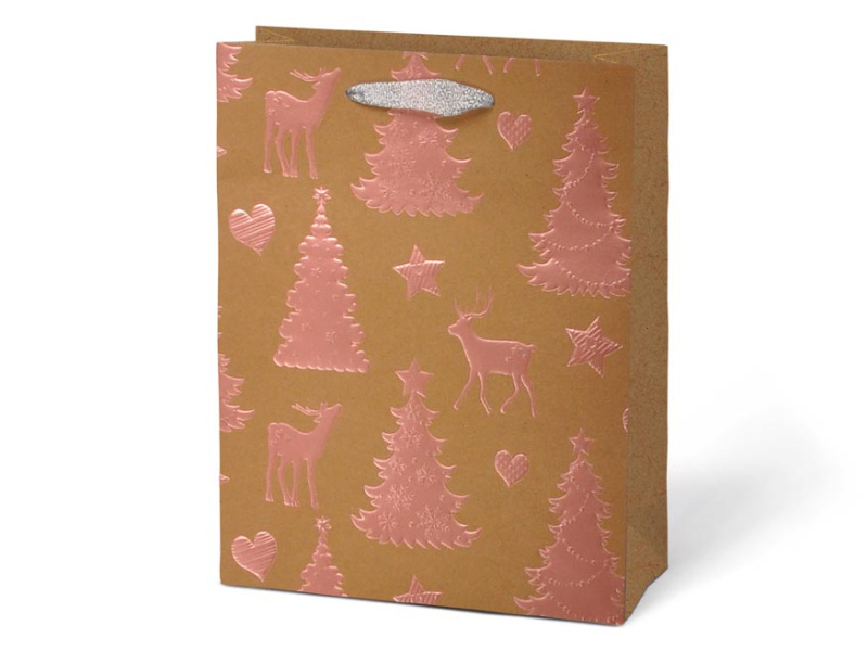 Vianočná papierová darčeková taška M LUX KRAFT s vianočnými motívmi je skvelou voľbou pre každého, kto hľadá štýlový a praktický spôsob balenia darčekov. Je vyrobená z pevného kraftového papiera, ktorý zaručuje nielen vysokú odolnosť, ale aj atraktívny vzhľad. Vrecko je vybavené textilnými držadlami na pohodlné prenášanie a obsahuje kartičku, na ktorú môžete napísať meno obdarovaného alebo krátke prianie. Motív: vianočné motívy Farba: hnedá/prírodná Materiál: kraftový papier Rozmery: 180 x 230 x 100 mm Dodávame v mixe po 4 ks podľa skladovej zásoby. Uvedená cena je za 1 ks.