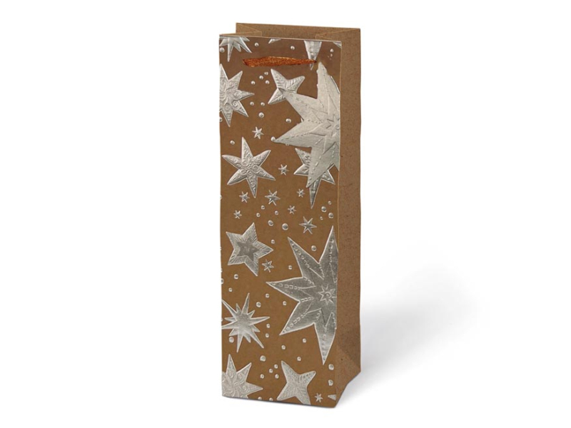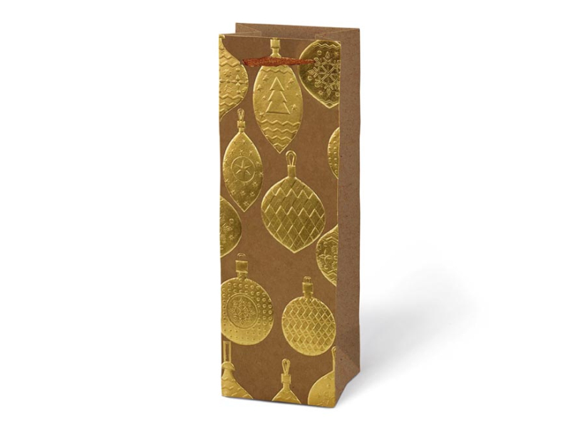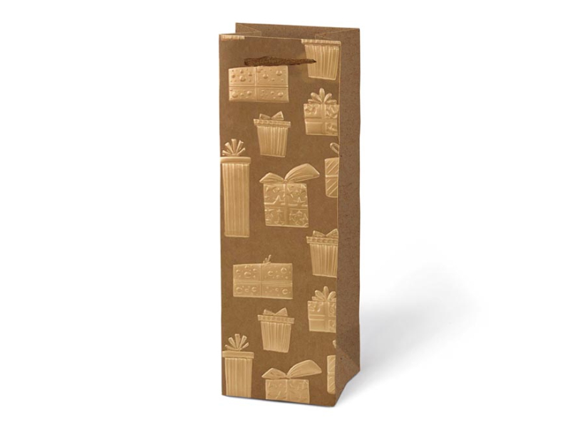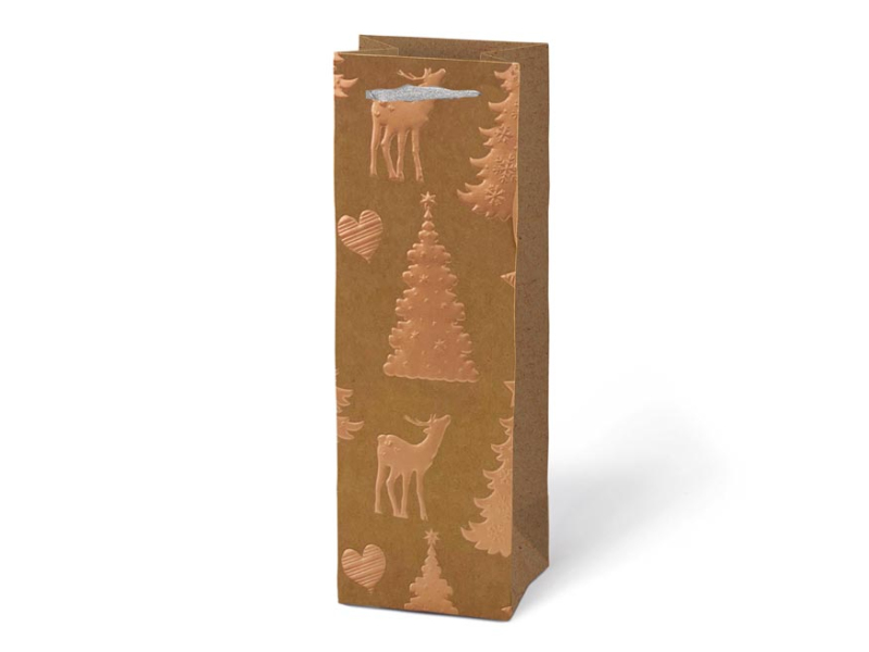 Vianočná papierová darčeková taška T12 KRAFT s vianočnými motívmi. Táto taška je špeciálne navrhnutá na elegantné a praktické balenie fliaš, napríklad vína alebo sektu, ktoré môžu byť ideálnym darčekom na Vianoce. Je vyrobená z pevného kraftového papiera, ktorý zaručuje nielen vysokú odolnosť, ale aj atraktívny vzhľad. Vrecko je vybavené textilnými držadlami na pohodlné prenášanie a obsahuje kartičku, na ktorú môžete napísať meno obdarovaného alebo krátke prianie. Motív: vianočné motívy Farba: hnedá/prírodná Materiál: kraftový papier Rozmery: 120 x 360 x 85 mm Dodávame v mixe po 4 ks podľa skladovej zásoby. Uvedená cena je za 1 ks.