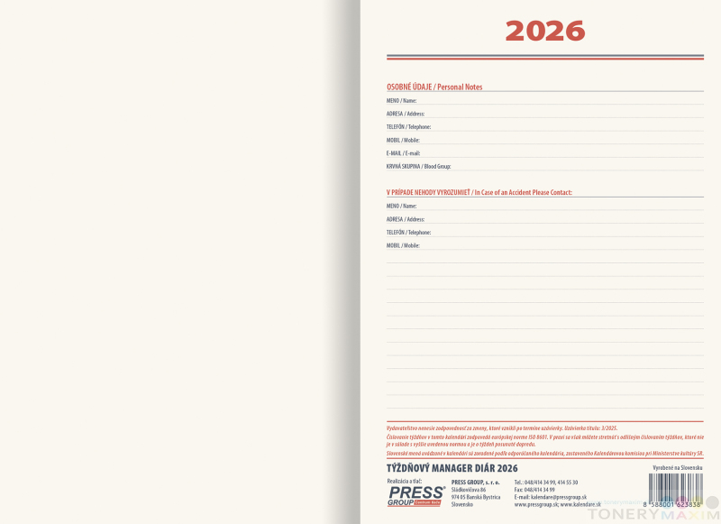 Formát: 165 x 245 mm (B5). Matná obálka s razbou roku. Tvrdá šitá väzba V8, 128 strán. Cena za 1 ks výrobku.Objednávky už od 1 ks.