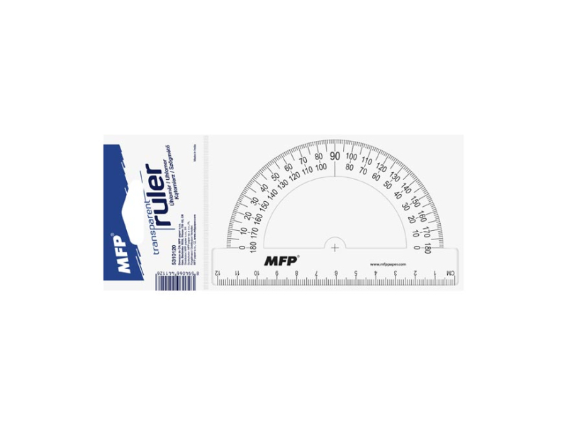 Školský plastový uhlomer transparentnej farby. Môžeme merať uhly do 180°, na spodnej strane je 10 cm pravítko. Uhlomer je zdravotne neškodný, neobsahuje ftaláty. Balený v plastovom vrecúšku so závesom.
