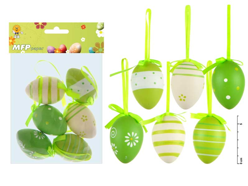 Veľkonočné plastové vajíčka s maľovanými motívmi, v zelenej a bielej farbe. Vajíčka majú stužku na zavesenie. Vyzdobte si svoj domov krásnymi veľkonočnými vajíčkami, ktoré Vám vytvoria očarujúcu atmosféru Veľkej noci! Túto dekoráciu môžete použiť na dekorovanie veľkonočných vencov alebo vetvičiek. BALENIE OBSAHUJE: - 6 ks plastových vajíčok Veľkosť: 60 mm Farba: biela, odtiene zelenej Dodávame v sáčku so závesom. Uvedená cena je za 1 balenie.