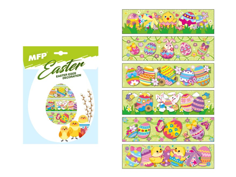 Veľkonočná obtlačok na vajíčka v mixe motívov. Odtlačky sú s obrázkami veľkonočných kuriatok, zajačikov, motýlikov a včielok. Pripravte sa poriadne na veľkonočné sviatky a ozdobte si vajíčka rôznymi spôsobmi. Prekvapte koledníkov a darujte im netradične ozdobené vajíčka. Balenie obsahuje: - 12 ks zmršťovacích košieľok NÁVOD: 1.Odstrihnite obrázok z pásu. 2. Na uvarené vajíčko navlečte košieľku. 3. Vajíčko s košieľkou položte na lyžicu a ponorte na 3 sekundy do horúcej vody (80 – 95°C). 4. Vyberte vajíčko z vody a nechajte uschnúť. Výrobok nesie označenie Český výrobok. Uvedená cena je za 1 balenie.