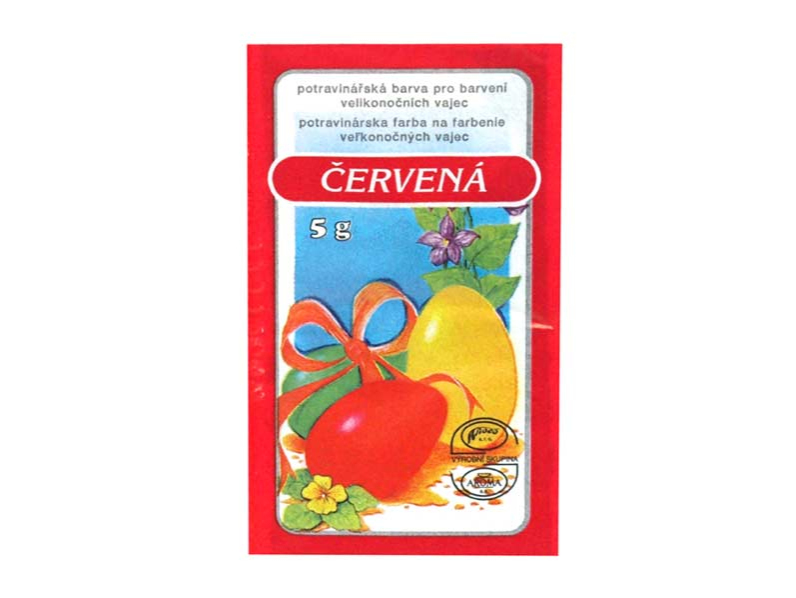Jedno vrecúško obsahuje 5g potravinárskej farby na zafarbenie vajíčok. Farba nesie označenie Český výrobok. Návod na použitie: Obsah vrecúška rozpustite v 1/4l vody (70°C), pridajte 1-2 lyžice octu. Vložte čisté, odmastené a natvrdo uvarené vajce na 2-5 minút. Zafarbené vajíčka vyberte a nechajte oschnúť. Aby sa Vám vajíčka pekne leskli, nezabudnite ich po zafarbení potrieť tukom. Roztok postačuje na zafarbenie až 15ks vajec.