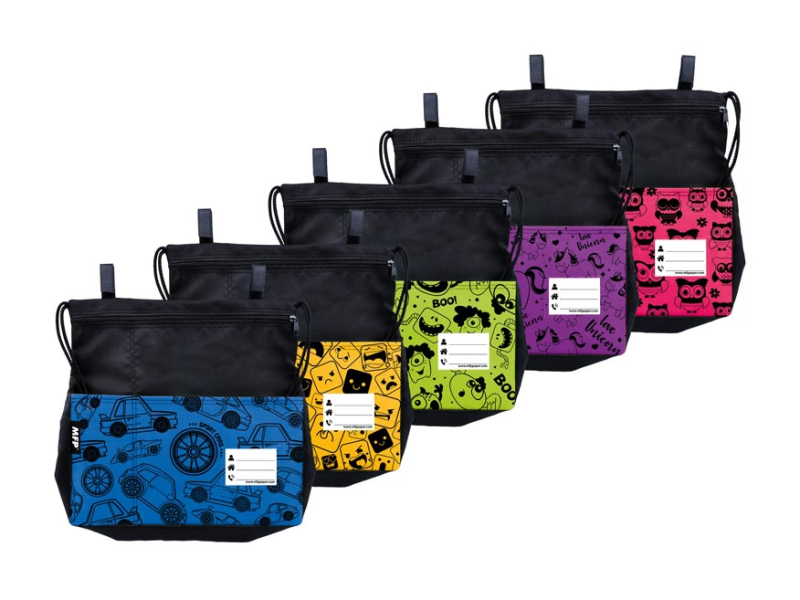 Školské umývateľné vrecko (taška) na lavici. Má celkom tri komory. Hlavné vrecko je opatrené zipsom, dve predné vrecká sú voľne prístupné. Na hornej strane sú dve oká opatrené suchým zipsom, aby ich bolo možné pripevniť k hornej konštrukcii lavice. V rožku sú šnúrky pripojené k nôžkam lavice alebo stola. Na prednej strane lavice je priehľadné vrecko s lístkom, na ktorý môžete napísať menovku žiaka, adresu a kontaktné číslo telefónu. Vrecko obsahuje: -3 komory -1 menovku Uvedená cena je za 1 ks Grafické symboly údržby textilu nájdete TU.