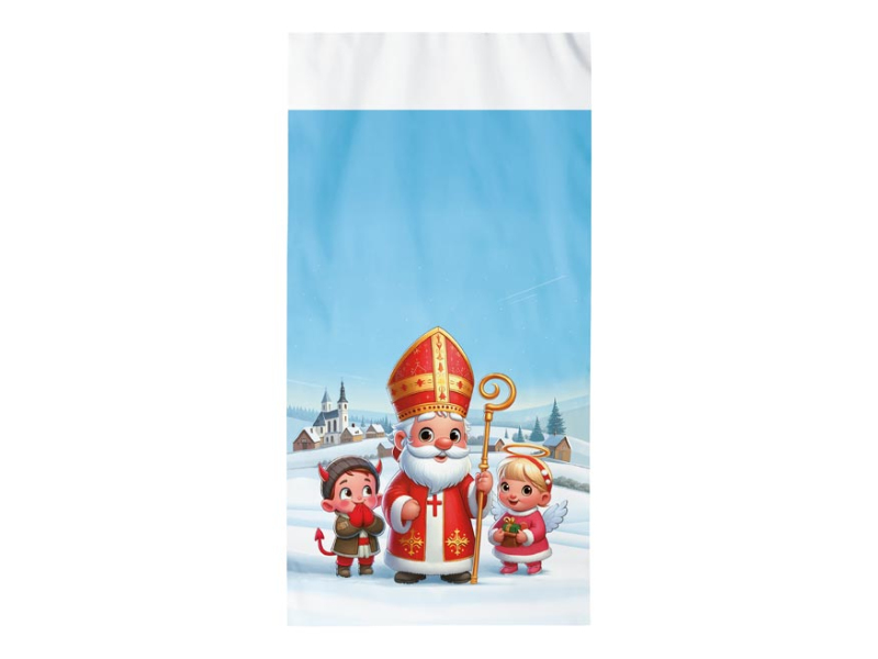 Mikulášske vrecko s potlačou Mikuláša, čerta a anjelika je ideálne pre balenie mikulášskej nádielky. Vyrobené z kvalitného materiálu s odolným povrchom, ktorý poskytuje dostatok miesta na sladkosti, malé darčeky alebo ovocie. Materiál: polypropylén Rozmer: 200 x 390 x 60 mm Všetkých 100 ks je balených v sáčku. Uvedená cena je za 1 ks.