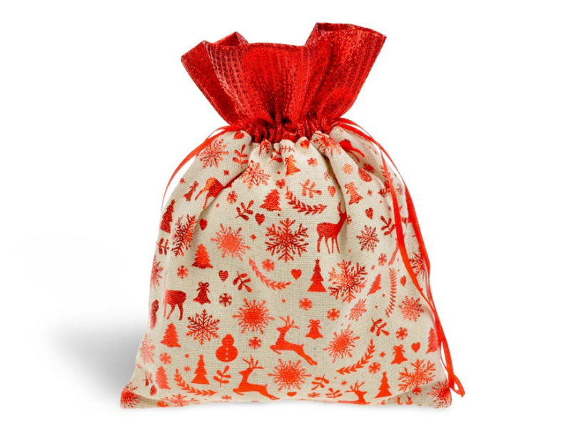 Látkové darčekové vrecúško s vianočným motívom. Darujte vianočný darček originálne. Je ideálny na zabalenie drobného darčeka, perníčkov, orieškov alebo sušeného ovocia. Vrecko má zatváranie na sťahovaciu stužku. Balenie: 12 ks Materiál: juta Motív: vianočný Rozmer: 180 x 230 mm Farba: hnedá/červená Uvedená cena je za 1 ks.