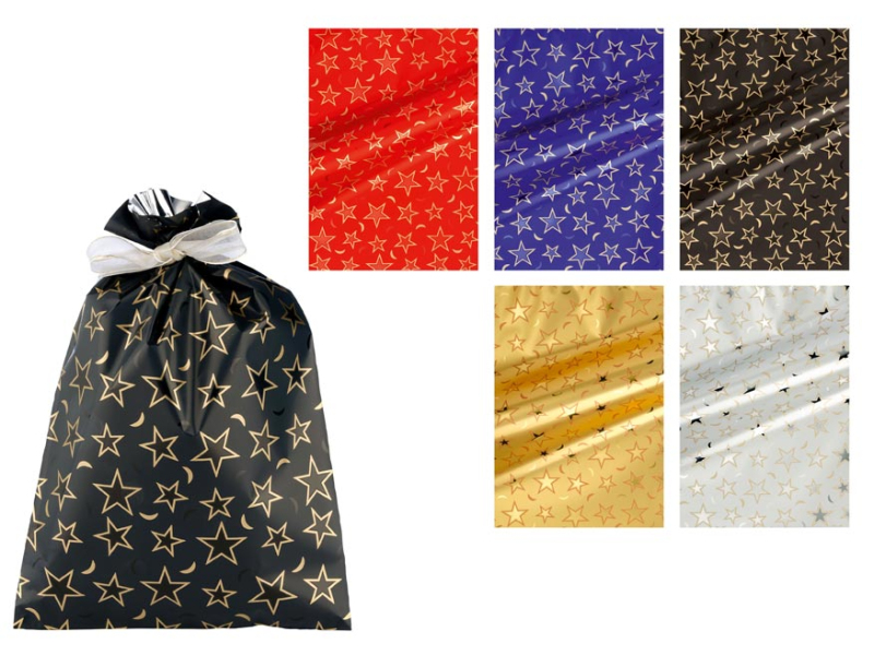 Vianočné celofánové vrecúško s motívom hviezdičiek v mixe farieb. Vyrobené z luxusného celofánu s potlačou. Skvelé na balenie drobných darčekov. Vrecúško môžete uzavrieť viazacou stuhou a tým ho dozdobiť. Motív: hviezdy Veľkosť: 160 x 250 mm Farba: červená, modrá, čierna, zlatá, strieborná Dodávame v mixe 5 ks podľa skladovej zásoby. Uvedená cena je za 1 ks.