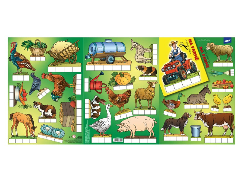 Vystrihovačky Na farme. S touto vystrihovačkou pre deti s tematikou zvierat na farme si užijete veľa zábavy. Vystrihovačky MFP Farma sú na 3 listoch formátu A4. Nájdete tu prasa, koňa, ovcu, kohúta, hus, zajaca, kravu, psa, sliepky a mnoho ďalších zvieratiek, ktoré nesmú chýbať žiadnemu farmárovi. Papier: 235 g + laminát UPOZORNENIE: Nevhodné pre deti do 3 rokov. Nebezpečenstvo vdýchnutia a prehltnutia malých čiastočiek. Uvedená cena je za 1 ks.