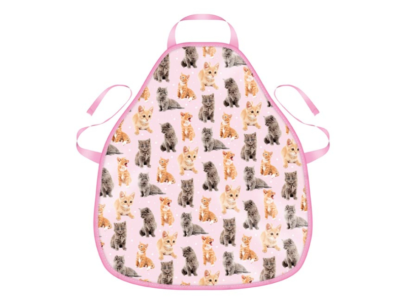 Detská zástera s motívom mačiek. Vhodná do výtvarnej výchovy, na domáce tvorenie, ale aj na pomoc v kuchyni. Zástera má nastaviteľný popruh okolo krku a zaväzuje sa okolo pása. Uvedená cena je za 1 ks.