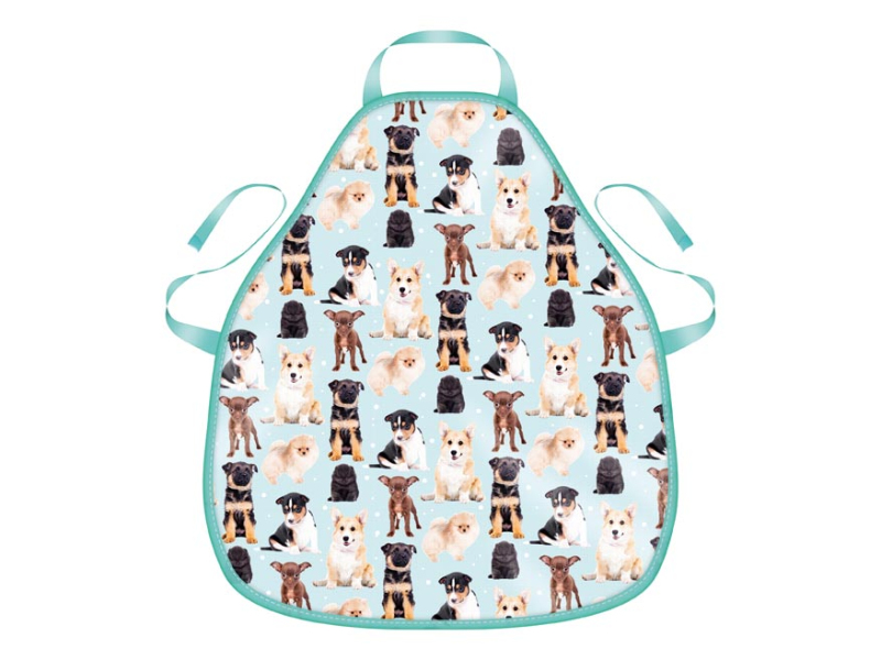 Detská zástera s motívom roztomilých šteniatok. Vhodná do výtvarnej výchovy, na domáce tvorenie, ale aj na pomoc v kuchyni. Zástera má nastaviteľný popruh okolo krku a zaväzuje sa okolo pása. Uvedená cena je za 1 ks.