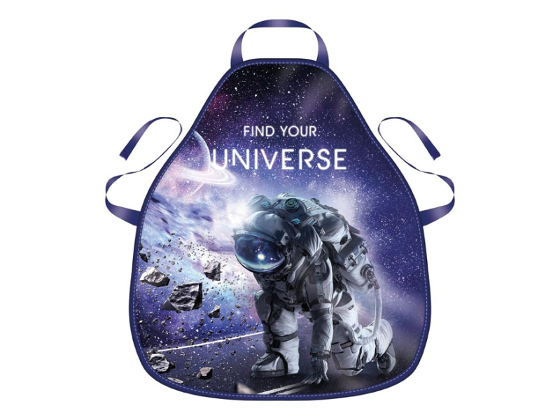 Detská zástera s motívom vesmíru. Vhodná do výtvarnej výchovy, na domáce tvorenie, ale aj na pomoc v kuchyni. Zástera má nastaviteľný popruh okolo krku a zaväzuje sa okolo pása. Uvedená cena je za 1 ks.