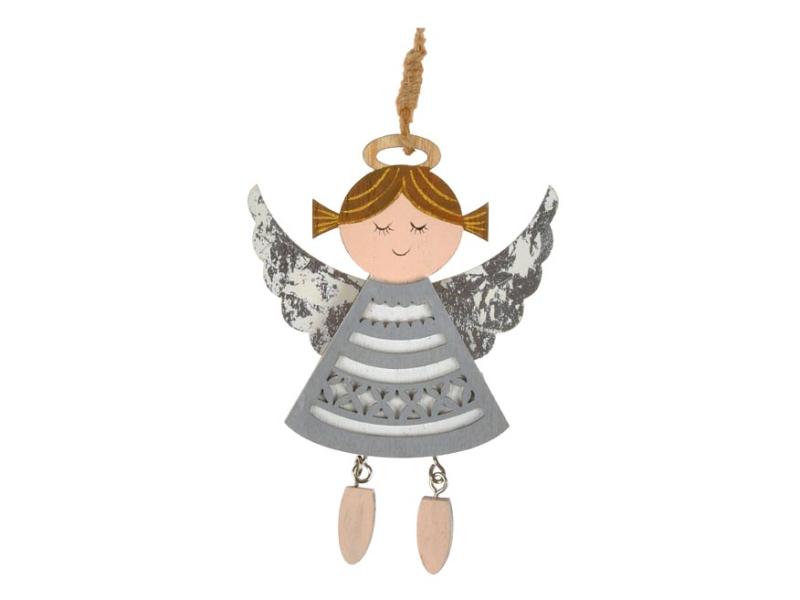 Vianočná dekorácia anjel v striebornej farbe na zavesenie. Vyrobený prevažne z dreva. Vianočná dekorácia, ktorá skrášli interiér aj exteriér. Môžete si ju zavesiť na vianočný stromček, okno a vchodové dvere alebo ju darovať ako darček svojim priateľom a rodine. Uvedená cena je za 1 ks.