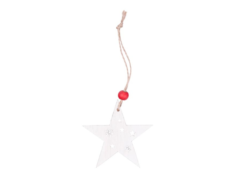 Drevená biela hviezda na zavesenie. Krásna závesná hviezda je vybavená šnúrkou s korálkou na zavesenie. Môžete ju zavesiť na stromček, do okna alebo na dvere. Skrášli váš interiér a umocní vianočnú atmosféru. BALENIE OBSAHUJE: - 2 ks hviezd Materiál: drevo Veľkosť: 70 mm Uvedená cena je za 1 balenie.