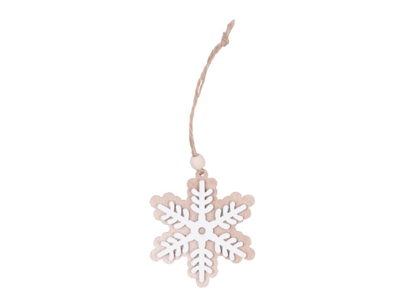 Vianočná drevená dekorácia snehová vločka na zavesenie. Krásna závesná snehová vločka je vybavená šnúrkou s korálkou na zavesenie. Môžete ju zavesiť na stromček, do okna alebo na dvere. Skrášli váš interiér a umocní vianočnú atmosféru. BALENIE OBSAHUJE: - 2 ks snehových vločiek Materiál: drevo Veľkosť: 70 mm Uvedená cena je za 1 balenie.