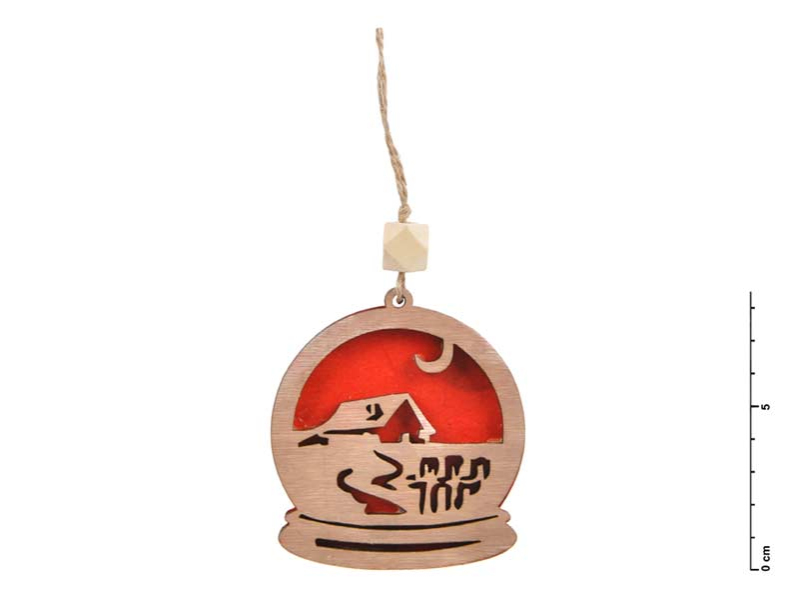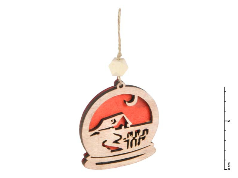 Vianočná dekorácia drevená s vyobrazením krajiny. Táto vianočná ozdoba je vyrezaná z preglejky s červeným pozadím. V hornej časti je očko so špagátikom, ktorý umožňuje ľahké zavesenie. Môžete ho použiť na ozdobu vianočného stromčeka, zavesiť na dvere, na okno, alebo ináč skrášliť vaše bývanie. Výška: 75 mm