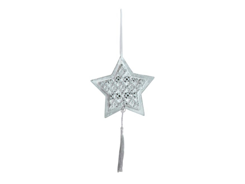 Vianočná ozdoba záves hviezda. Záves obsahuje 1 hviezdu vyrobenú z betónu. V hornej časti je očko so špagátom, ktoré umožňuje ľahké zavesenie. Ozdobu môžete zavesiť na dvere, okno, alebo inak skrášliť vaše bývanie a navodiť pocit prichádzajúcich Vianoc. Uvedená cena je za 1 ks.