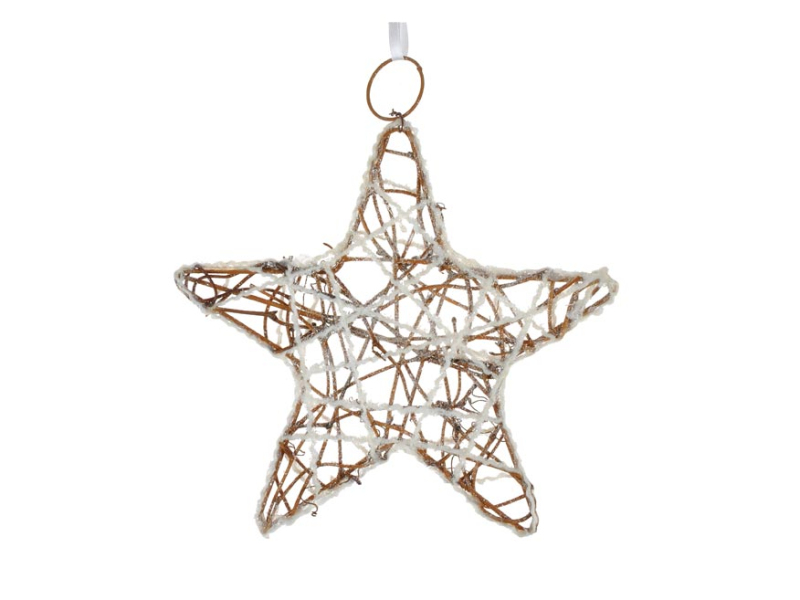 Vianočná hvězda na zavesenie. V modernom nenápadnom dizajne. Táto vianočná ozdoba je vybavená stuhou na zavesenie. Môžete ju použiť na ozdobenie vianočného stromčeka, zavesiť ju na dvere, okno a skrášliť si tak svoj domov. Veľkosť: 200 mm Uvedená cena je za 1 ks.