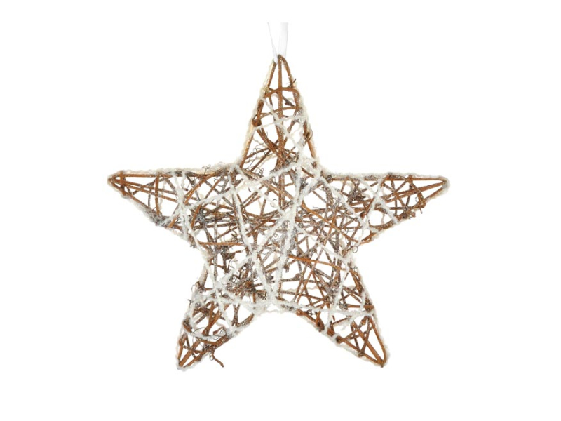 Vianočná dekorácia v tvare hviezdy so závesom. Táto vianočná dekorácia je vybavená šnúrkou na zavesenie. Môžete ju použiť na ozdobenie vianočného stromčeka, zavesiť ju na dvere, okno a skrášliť si tak svoj domov. Veľkosť: 250 mm Uvedená cena je za 1 ks.