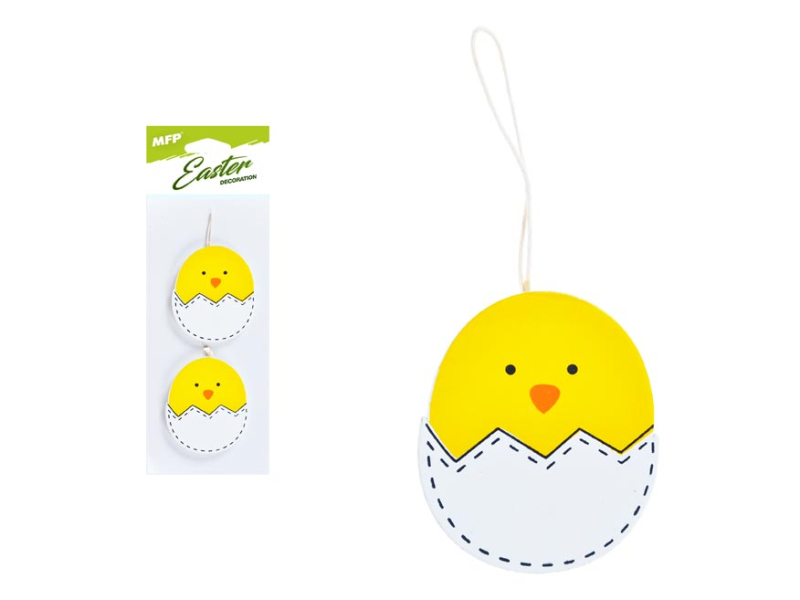 Veľkonočná drevená dekorácia záves s motívom kuriatka v škrupine. Dekorácia má šnúrku na zavesenie. Vyzdobte si byt veľkonočnými dekoráciami a privítajte tak sviatok jari. Túto dekoráciu môžete použiť na dekorovanie veľkonočných vencov alebo vetvičiek. BALENIE OBSAHUJE: -2 ks dekorácií (kuriatko) Farba: žltá a biela Veľkosť: 6,5 cm Dekorácia je vo vrecku so závesom. Uvedená cena je za 1 balenie.