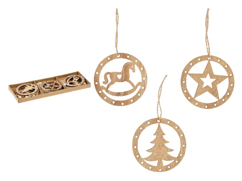 Vianočné drevené ozdoby 9 ks – Vianoce sú sviatky pohody a pokoja, preto je treba sa na ne poriadne pripraviť. Vyzdobte si domov touto krásnou drevenou dekoráciou, ktorá vám navodí pocit prichádzajúcich Vianoc. Každá vianočná ozdoba je opatrená šnúrkou na zavesenie. Môžete ju použiť na vianočný stromček, na dvere, na okno a skrášliť tak vaše bývanie. SÚPRAVA OBSAHUJE: - 9 ks drevených ozdôb Dodávame v drevených priehradkách. Uvedená cena je za 1 balenie.