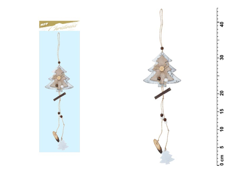 Vianočná drevená dekorácia stromček v bielej farbe so závesom. Vianočná ozdoba je opatrená korálkami a povrázkom na zavesenie. Vhodná na zavesenie do dverí, do okna alebo na stenu. Vyrobené z preglejky a prírodných materiálov. Dodávame v sáčku so závesom. Uvedená cena je za 1 ks.