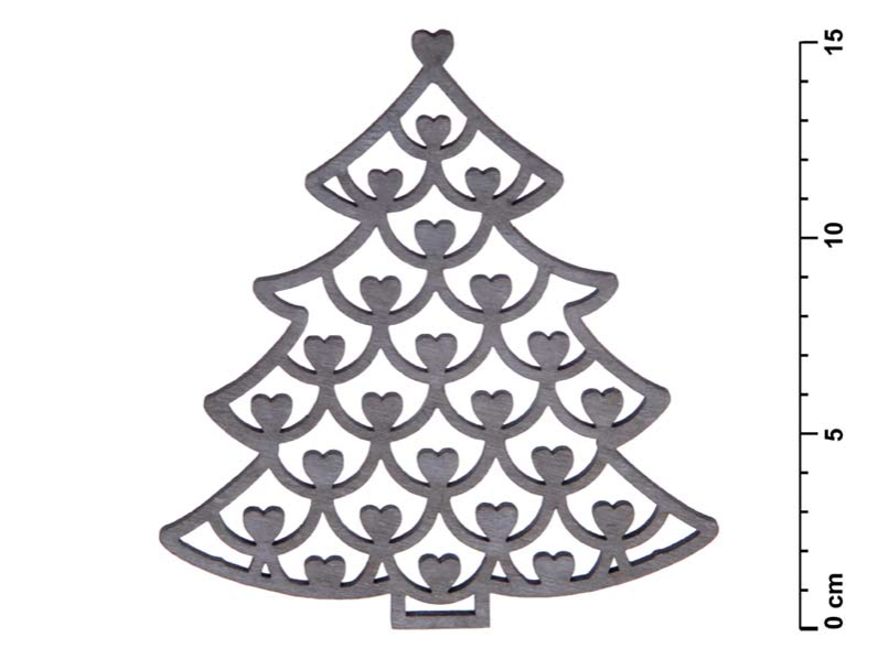 Vianočná drevená ozdoba stromček s vyrezávanými srdiečkami a závesom. Vianočná ozdoba je vhodná na závesenie. Môžete ju použiť na ozdobenie vianočného stromčeka, vianočného venca a skrášliť tak Vaše bývanie. Veľkosť: 150 mm Uvedená cena je za 1 ks.