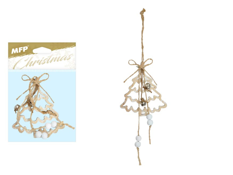Vianočná, drevená ozdoba na stromček s rolničkami a závesom. Táto ozdoba sa dodáva so šnúrkou na jednoduché zavesenie. Môžete ju použiť na ozdobenie vianočného stromčeka, zavesiť ju na dvere, okno a skrášliť si tak svoj domov. Veľkosť: 90 mm Dodávame v sáčku so závesom. Uvedená cena je za 1 ks.