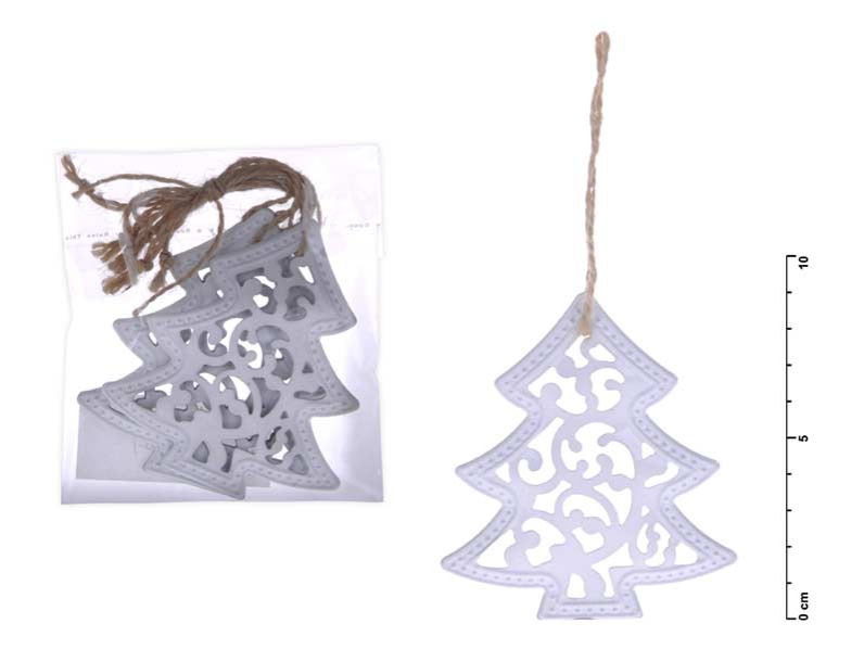 Vianočná kovová biela ozdoba stromček so závesom. Súčasťou ozdoby je aj očko so špagátom na zavesenie. Ideálna na výzdobu do okien či na vianočný stromček. Farba: biela Veľkosť: 90 mm Uvedená cena je za 1 ks.