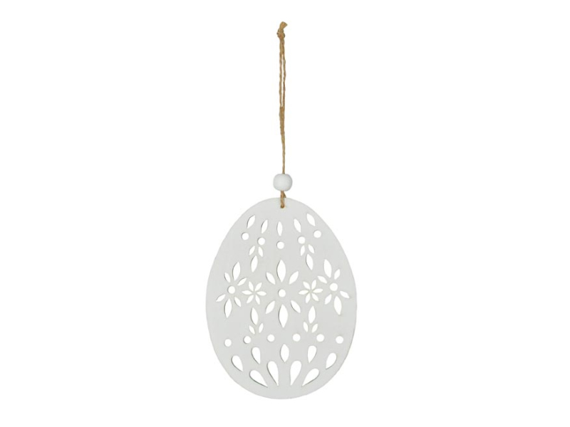 Veľkonočné drevené, dekoračné vajíčko v bielej farbe so závesom. Táto dekorácia je ideálnym doplnkom interiéru, prinesie domov veľkonočnú náladu. Dekorácia má šnúrku na zavesenie. Farba: biela Veľkosť: 120 mm Uvedená cena je za 1 ks.