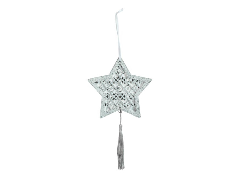 Vianočná ozdoba v tvare hviezdy so závesom. Ozdoba je vyrobená z betónu a vďaka tomu má netradičný vzhľad. V hornej časti sa nachádza pútko so stuhou, ktoré umožňuje jednoduché zavesenie. Ozdobu môžete zavesiť na dvere, okno alebo inak skrášliť svoj domov a navodiť pocit blížiacich sa Vianoc. Veľkosť: 120 mm Uvedená cena je za 1 ks.