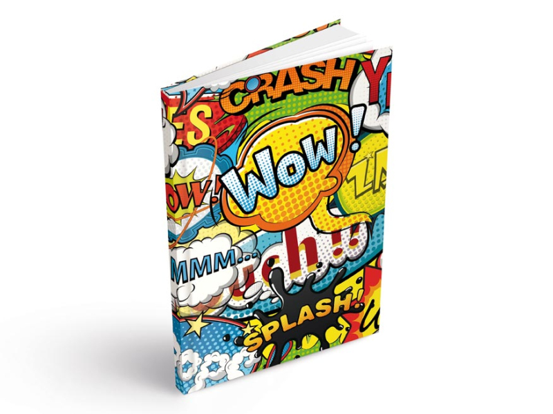 Záznamová kniha MFP s linajkami. Dosky sú z pevného lepeného kartónu s laminovaním. Na titulnej strane sú hlášky z komiksov. Tieto bloky sú opatrené väzbou V8, ktorá patrí medzi najprepracovanejšie a najpevnejšie väzby. Počet listov: 100 Formát: A5 Motív: Comics Uvedená cena je za 1 ks
