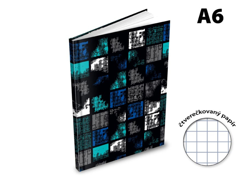 Záznamová kniha MFP formátu A6, so štvorčekovaným papierom. Dosky sú z pevného lepeného kartónu s laminovaním. Tieto bloky sú opatrené väzbou V8, ktorá patrí medzi najprepracovanejšie a najpevnejšie väzby. V záznamovej knihe je 100 listov štvorčekovaných papierov. Veľkosť riadku je 8 mm. Počet listov: 100 Formát: A6