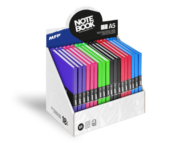 Linajkový, poznámkový blok A5 so zaoblenými rohmi. Nevyhnutná školská a kancelárska pomôcka. Zápisník je opatrený gumičkou proti samovoľnému otvoreniu a záložkou. Na zadnej vnútornej strane je papierové vrecko. Produkcia v pestrých farbách: modrej, ružovej, fialovej, zelenej, oranžovej a čiernej. Formát: A5 Počet listov: 100 Dodávame v mixe po 6 ks podľa skladových zásob. Uvedená cena je za 1 ks.