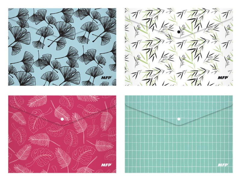 Zložka z PolyPropylénu, ktorá sa zatvára pomocou cvoku, vo formáte A5. Zložka slúži ako pomocník na triedenie a ukladanie dokumentov, takže ich budete mať vždy pohromade. MATERIÁL: PP SILA MATERIÁLU: 0,21 mm POTLAČ: listy Ginko biloby, listy, mriežka FARBA: svetlo modrá, biela, ružová, zelená Dodávame v mixe po 4 ks podľa skladovej zásoby. Uvedená cena je za 1 ks.