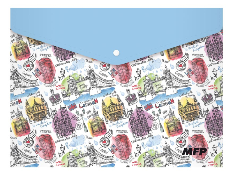 Zložka z PolyPropylénu, ktorá sa zatvára pomocou cvoku, vo formáte A5. Zložka slúži ako pomocník na triedenie a ukladanie dokumentov, takže ich budete mať vždy pohromade. MATERIÁL: PP SILA MATERIÁLU: 0,21 mm POTLAČ: Londýn, kaktusy, kvety, vlny Dodávame v mixe po 4 ks podľa skladovej zásoby. Uvedená cena je za 1 ks.